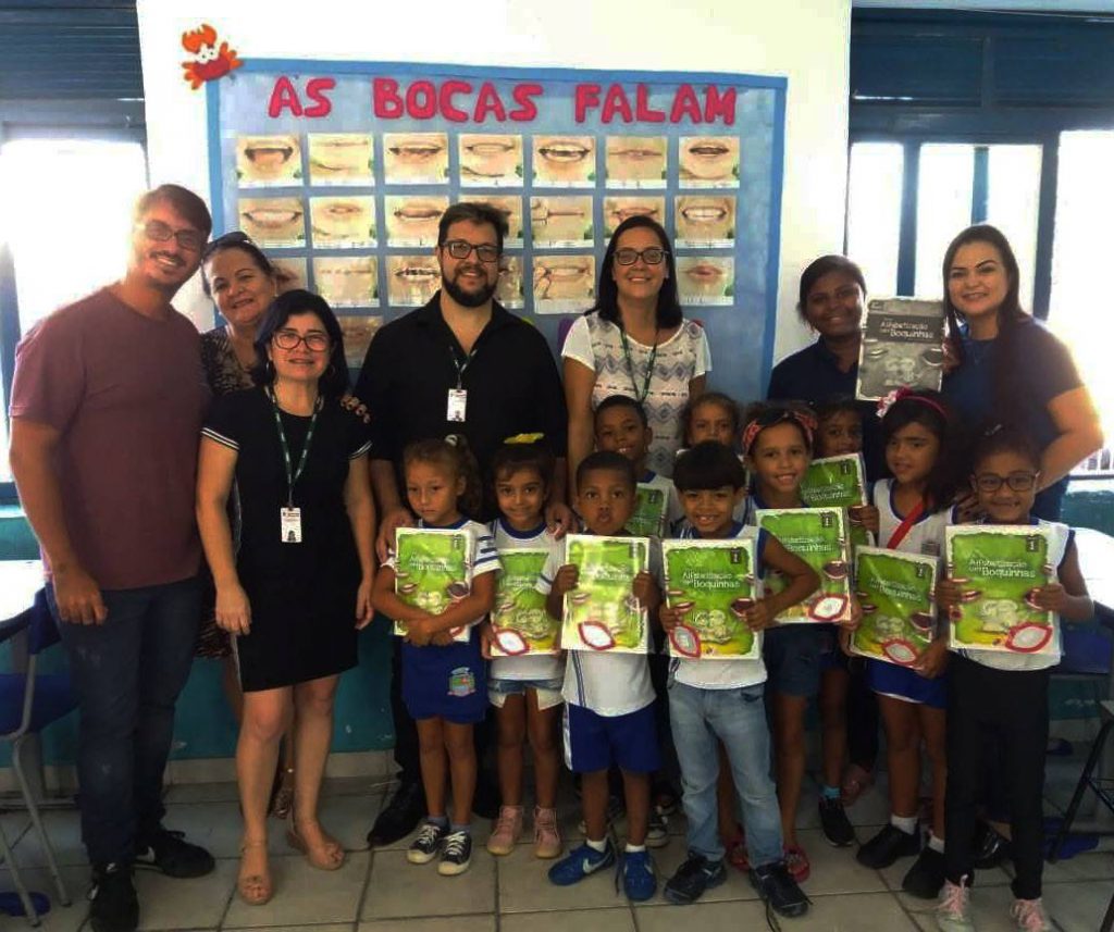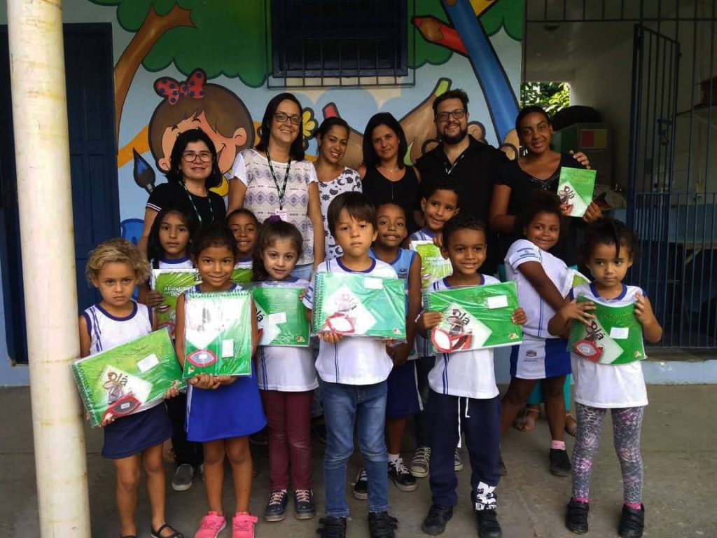O material foi entregue a todos os alunos e professores do nível quatro da educação infantil e do primeiro ano do ensino fundamental.